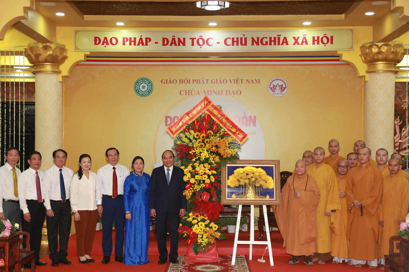 Hoà thượng Thích Thiện Nhơn-Chủ tịch Hội đồng Trị sự GHPGVN trân trọng cảm ơn Chủ tịch nước Nguyễn Xuân Phúc và đoàn đã tới thăm, chúc mừng đại lễ Phật đản tại chùa Minh Đạo.