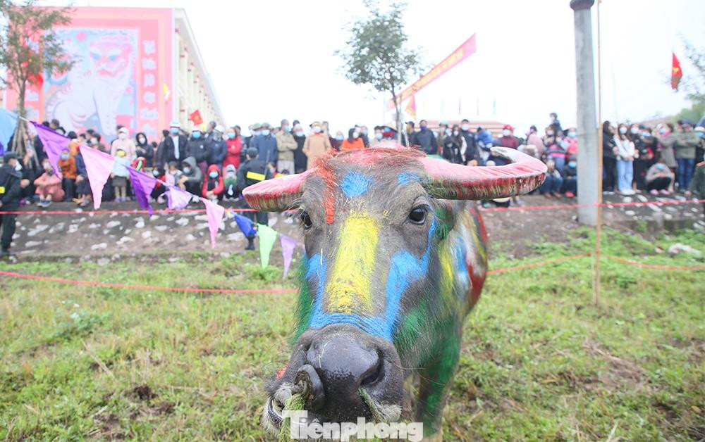 Những chú trâu được hóa trang thành linh vật năm Nhâm Dần hoặc "trang điểm" rực rỡ, đầy màu sắc dưới bàn tay của các họa sỹ tại Lễ Tịch điền năm 2022.