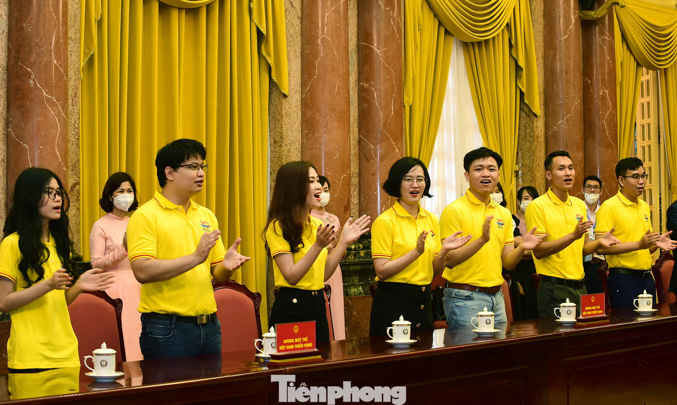 | Chủ tịch nước Nguyễn Xuân Phúc chụp ảnh cùng lãnh đạo T.Ư Đoàn, Báo Tiền Phong và các gương mặt trẻ Việt Nam tiêu biểu, triển vọng năm 2021. |