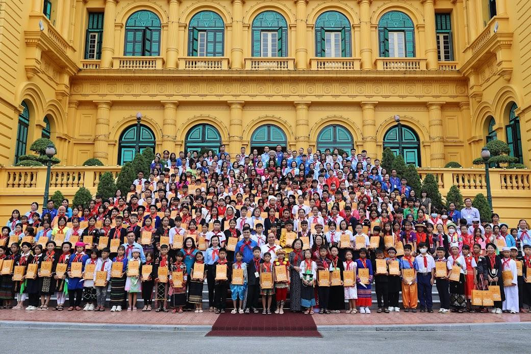 Biểu dương thành tích đã đạt được, Chủ tịch nước mong muốn các cháu thiếu nhi tiếp nối truyền thống vẻ vang của thiếu niên, nhi đồng Việt Nam, ra sức học tập thật tốt, đọc thêm nhiều kiến thức trong sách vở, hiểu thêm kiến thức xã hội.