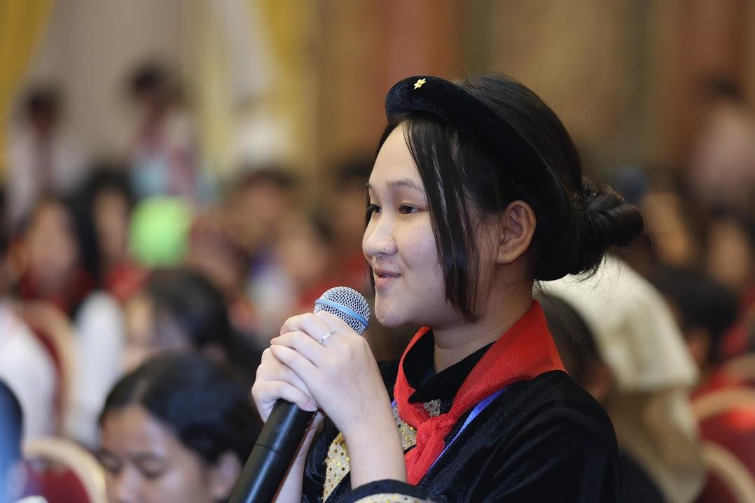 Em Hồ Thị Hoài Linh, dân tộc Chứt, chia sẻ: “Cháu thuộc đồng bào dân tộc Chứt, dân tộc thiểu số dưới 10.000 người mới được phát hiện. Điều kiện học tập, sinh sống của chúng cháu còn nhiều hạn chế; vì vậy, cháu mong lãnh đạo Đảng, Nhà nước quan tâm hỗ trợ để chúng cháu có môi trường, điều kiện được học tập, phát triển”, em Linh nói.