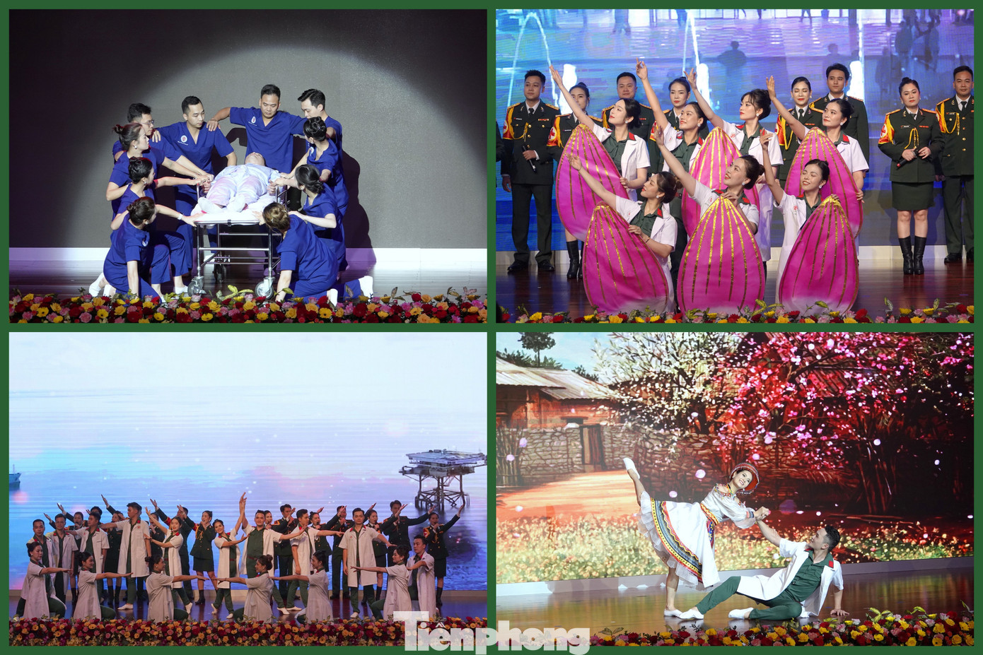 | Chương trình nghệ thuật tại đại hội đã tái hiện những đóng góp, cống hiến của đội ngũ thầy thuốc áo lính ở Bệnh viện TƯQĐ 108 những năm qua. |