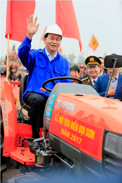 Chủ tịch nước Trần Đại Quang lái máy cày ở Lễ hội Tịch Điền