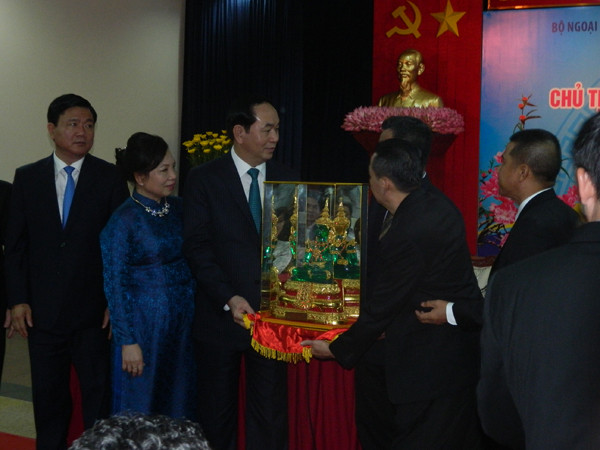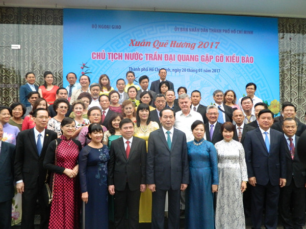 Tại buổi gặp mặt, Chủ tịch nước Trần Đại Quang đã thông báo vắn tắt tình hình phát triển kinh tế xã hội của đất nước đến kiều bào. Mặc dù trong năm qua đối mặt với nhiều thách thức, tình hình thiên tai lũ lụt, xâm nhập mặn, biến đổi khí hậu ngày càng gay gắt nhưng kinh tế đất nước đã đạt và vượt hầu hết các chỉ tiêu đề ra.