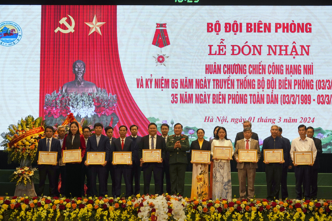 | Cũng tại buổi lễ, lãnh đạo Ủy ban Trung ương MTTQ Việt Nam và Bộ Quốc phòng đã trao thưởng cho các tập thể, cá nhân tiêu biểu trong thực hiện Ngày Biên phòng toàn dân. |