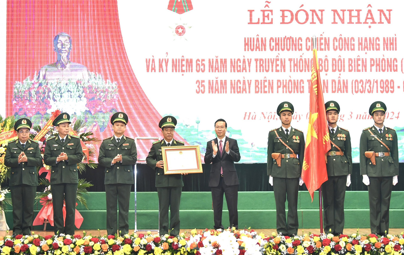 | Chủ tịch nước Võ Văn Thưởng trao Huân chương Chiến công hạng Nhì tặng lực lượng Biên phòng. |