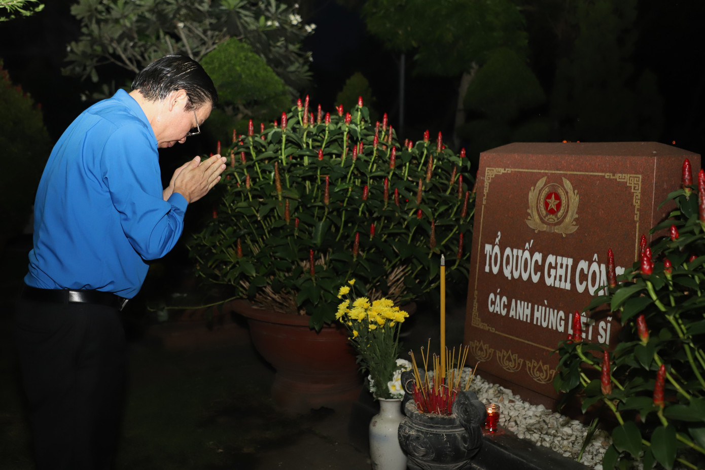 Chủ tịch UBND TPHCM Phan Văn Mãi cùng lãnh đạo các sở, ban ngành thành phố và các bạn đoàn viên thanh niên thành phố kính dâng lên anh linh các Anh hùng liệt sĩ những nén tâm hương, ngọn nến với lòng biết ơn sâu sắc.
