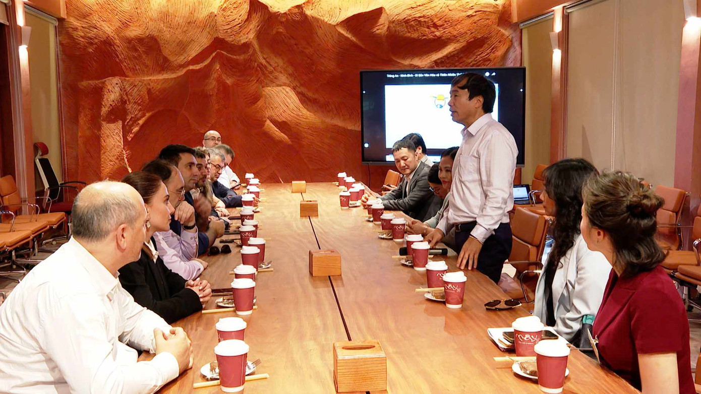 Tại buổi làm việc, ông Đoàn Minh Huấn, Bí thư Tỉnh ủy Ninh Bình đã thông tin khái quát về lịch sử, vị trí địa lý, điều kiện tự nhiên, cũng như tình hình phát triển kinh tế - xã hội của Ninh Bình, đặc biệt nhấn mạnh về Quần thể Danh thắng Tràng An - Di sản văn hóa và thiên nhiên thế giới duy nhất ở Đông Nam Á. Ông Đoàn Minh Huấn cũng chia sẻ kế hoạch phát triển tỉnh Ninh Bình thành một đô thị di sản, sáng tạo, hội nhập sâu rộng vào mạng lưới các thành phố di sản toàn cầu.
