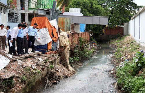 Chiều 16/9, Chủ tịch UBND TP HCM Nguyễn Thành Phong cùng lãnh đạo các sở ngành xuống thị sát những đoạn kênh bị lấn chiếm khiến sân bay Tân Sơn Nhất (quận Tân Bình) rơi vào cảnh ngập mỗi khi mưa lớn.
