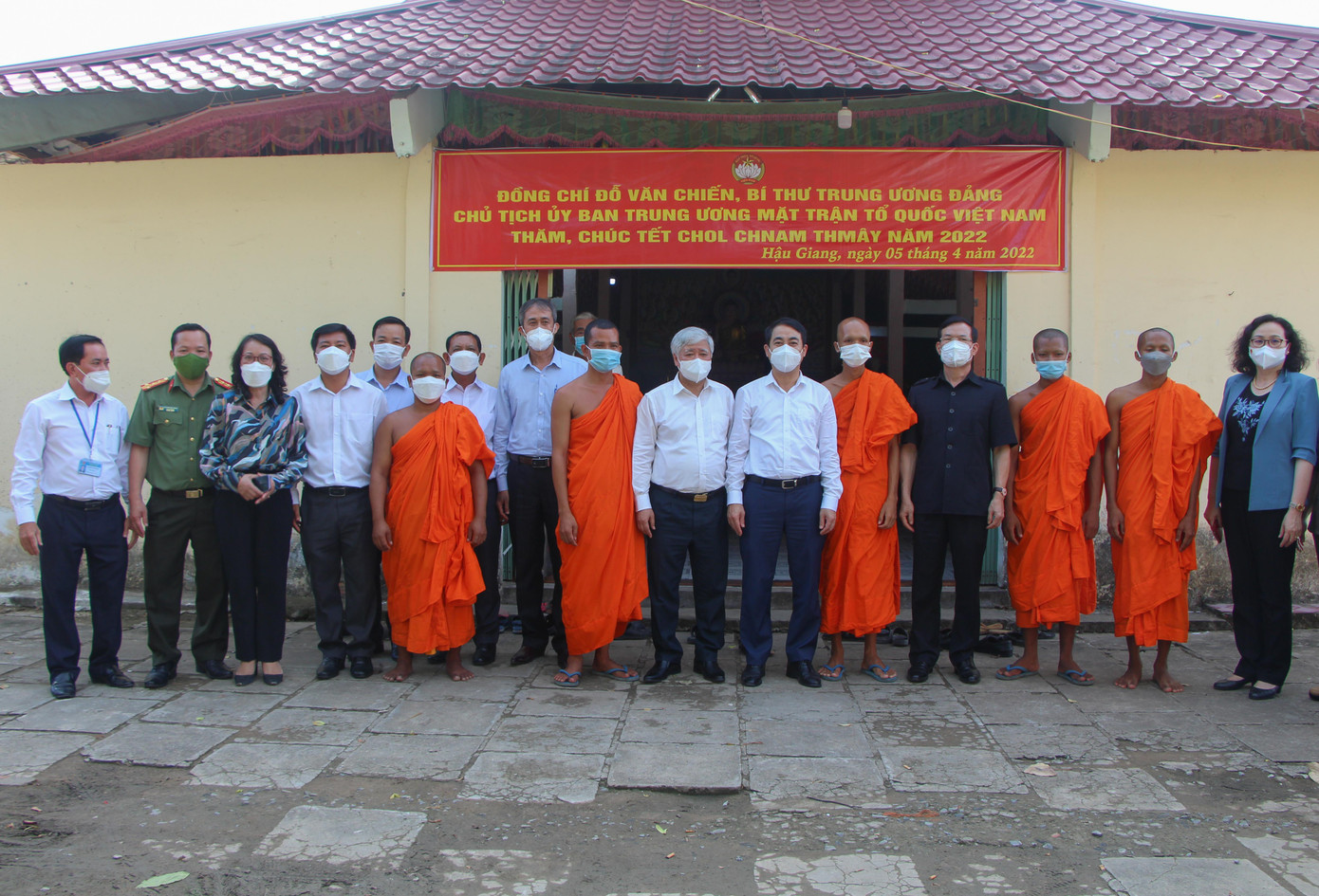 Trước đó, chiều 5/4, Chủ tịch Ủy ban Trung ương MTTQ Việt Nam Đỗ Văn Chiến cùng đoàn công tác cũng đã đến thăm, chúc Tết và tặng quà tại chùa Ô ChumPrưKsa ở ấp 6, xã Vị Thủy, huyện Vị Thủy, tỉnh Hậu Giang và Hội Đoàn kết sư sãi yêu nước tỉnh Hậu Giang.