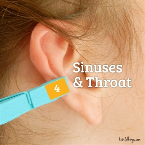 Chếch xuống dưới vị trí giữa vành tai là khu vực có liên quan tới các xoang và họng. Nếu bạn bị xoang hoặc cảm lạnh, tác động lực lên vị trí này sẽ hỗ trợ đáng kể trong việc giảm bớt căng thẳng cũng như ngắt cơn đau họng.
