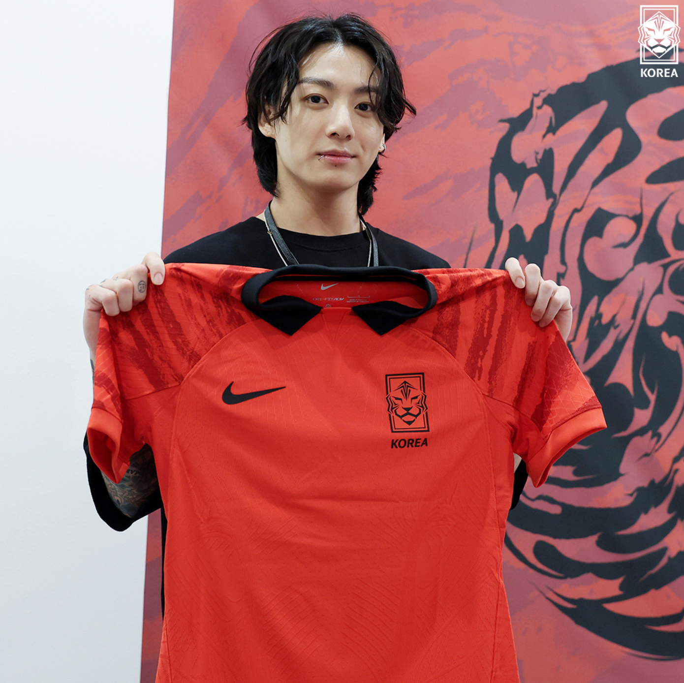 Trước khi chính thức bắt đầu lễ khai mạc World Cup, Jungkook cũng đã ghé thăm đội tuyển quốc gia Hàn Quốc để dành những lời cổ vũ và động viên chân thành.