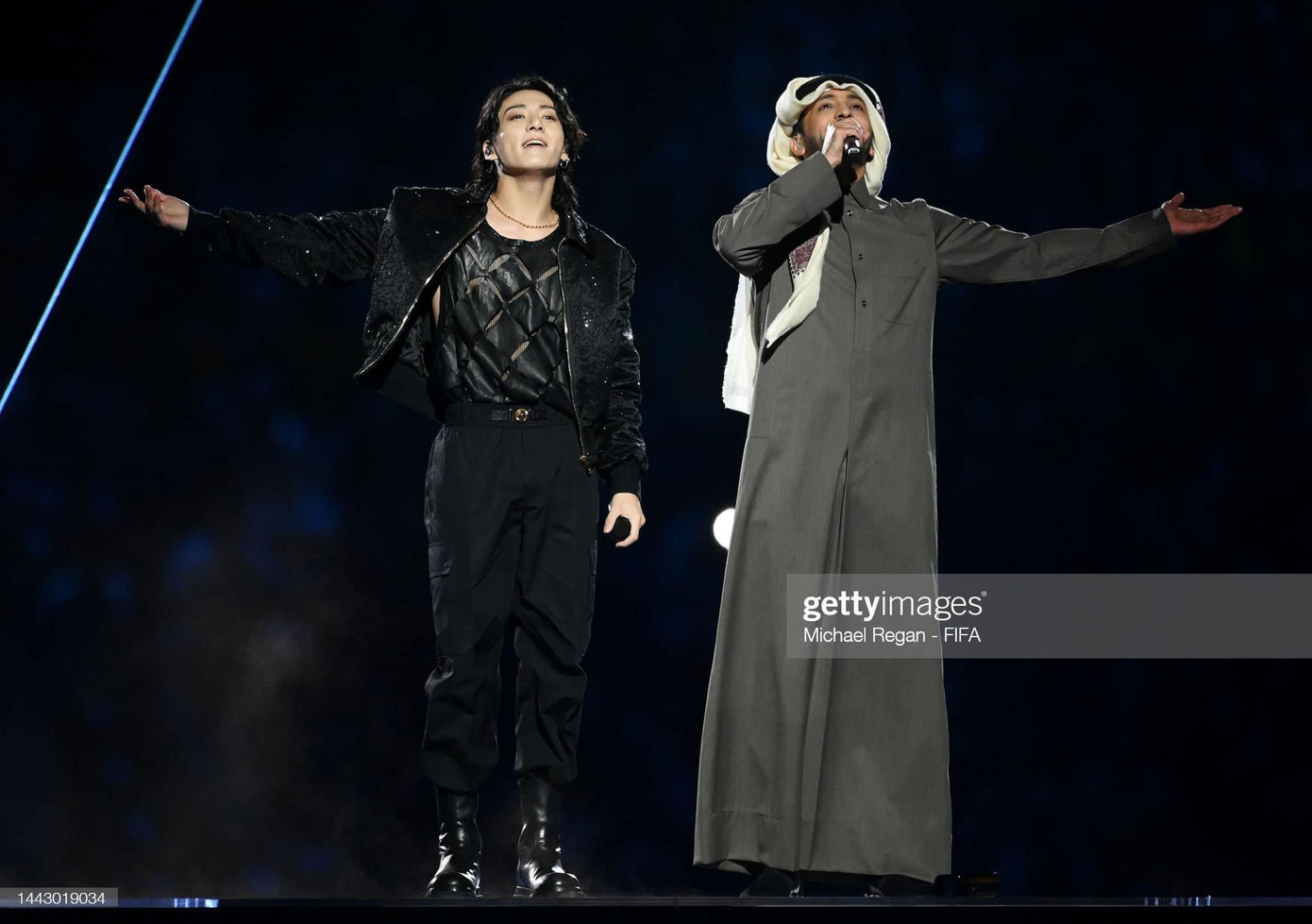 | Jungkook (BTS) cùng nghệ sĩ người Qatar Fahad Al Kubaisi thể hiện ca khúc chủ đề của World Cup 2022, Dreamers. |