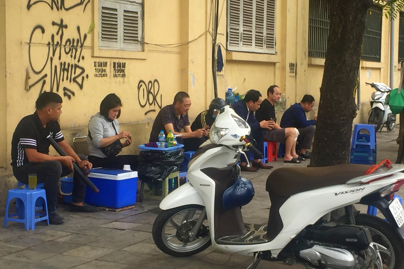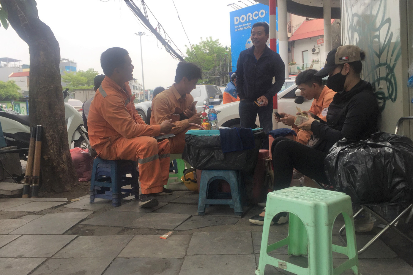 Các quán nước, quán trà đá trên lề đường vẫn ngang nhiên công khai mở bán ngay giữa ban ngày dù chưa có lệnh được phép hoạt động.