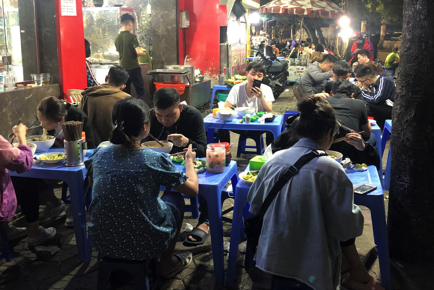 Các quán ăn được dựng lên gần các khu văn phòng, trường học, bệnh viện,... nên cứ vào khoảng thời gian ăn sáng là 6 giờ đến 8 giờ và ăn trưa là 11 giờ đến 12 giờ luôn chật kín người.