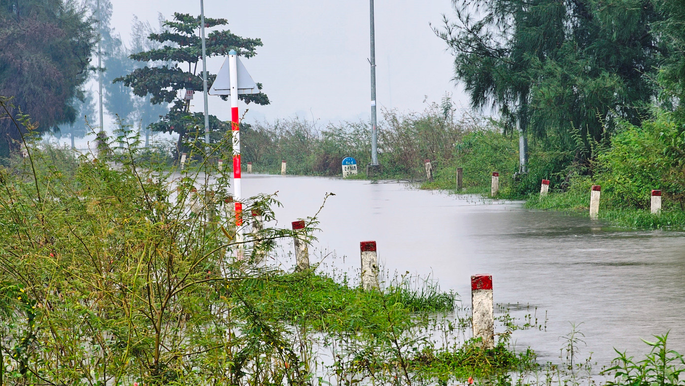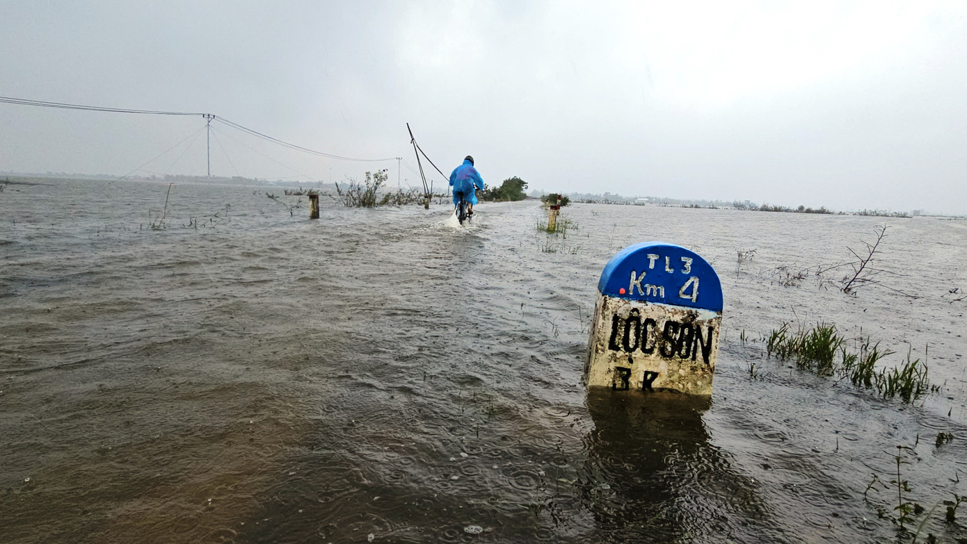 | Tuyến Tỉnh lộ 3 qua xã Phú Hồ, huyện Phú Vang, bị ngập lụt nhiều ngày lại tiếp tục có nguy cơ ngập sâu hơn do mưa lớn tiếp diễn. |