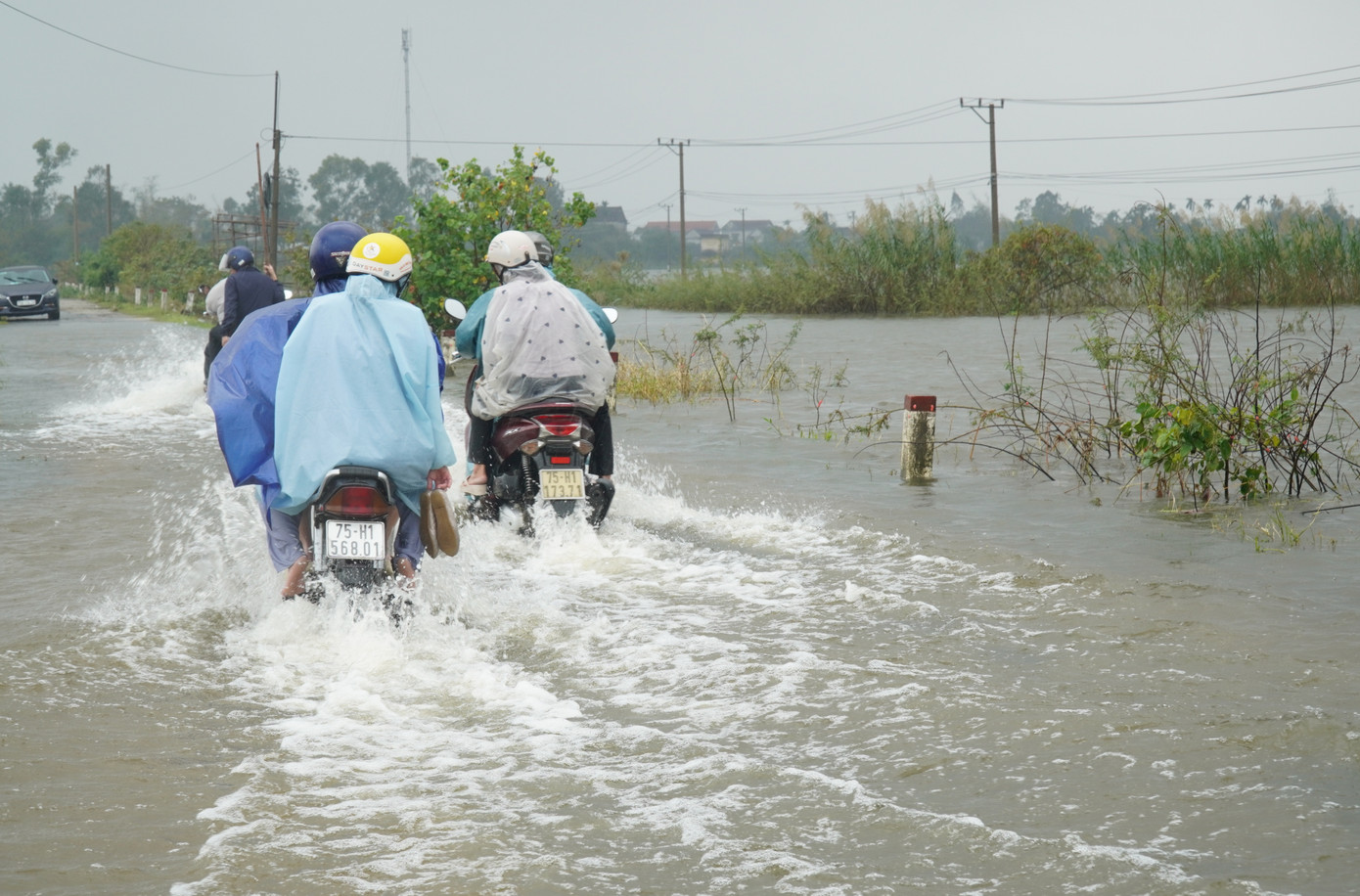 Ghi nhận của phóng viên, tuyến tỉnh lộ 1 từ Huế đi Phú Vang đã bị ngập một số đoạn qua xã Thủy Thanh (thị xã Hương Thủy). Đơn vị quản lý tuyến đường đã lập rào chắn cảnh báo, ngăn chặn người và phương tiện đi vào khu vực thấp trũng, nước dâng nguy hiểm.