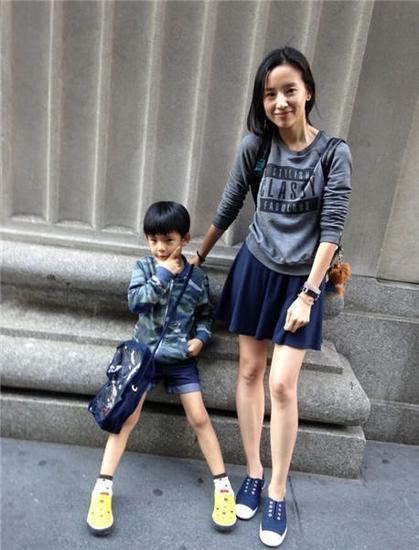 Đổng Khiết trẻ trung như nữ sinh bên con trai năm nay 9 tuổi.