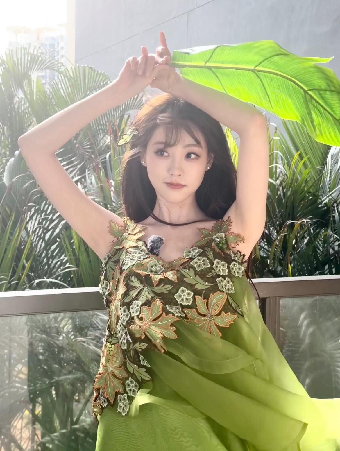 Chúc Tự Đan xây dựng hình tượng thành công hình ảnh nàng thơ mùa Xuân qua phong cách thời trang. Mỹ nhân sinh năm 1992 tỏa sáng nhờ các bộ trang phục tông màu tươi sáng, kiểu dáng bay bổng, lối make-up trong trẻo.