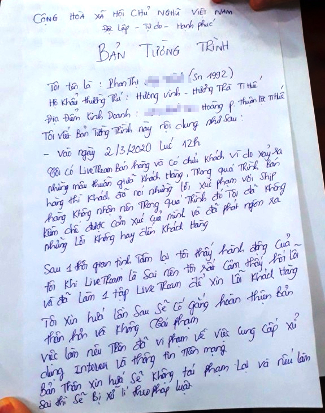 Ngày 12/4, Thanh tra Sở Thông tin & Truyền thông (TT&TT) tỉnh TT-Huế phối hợp các cơ quan chức năng tiến hành làm việc với ông Cao Phương T. (trú phường Thuận Lộc, TP Huế) và bà Phan Thị Diệu T. (cùng SN 1992, hộ khẩu thường trú Hương Vinh, Hương Trà, TT-Huế) để làm rõ về hành vi chửi bới khách hàng khi livestream bán áo quần trên mạng xã hội.