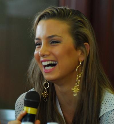 Nụ cười thoải mái của Hoa hậu Israel khi giao lưu với thanh niên Việt Nam tại trụ sở báo Tiền Phong, 15 Hồ Xuân Hương, Hà Nội.