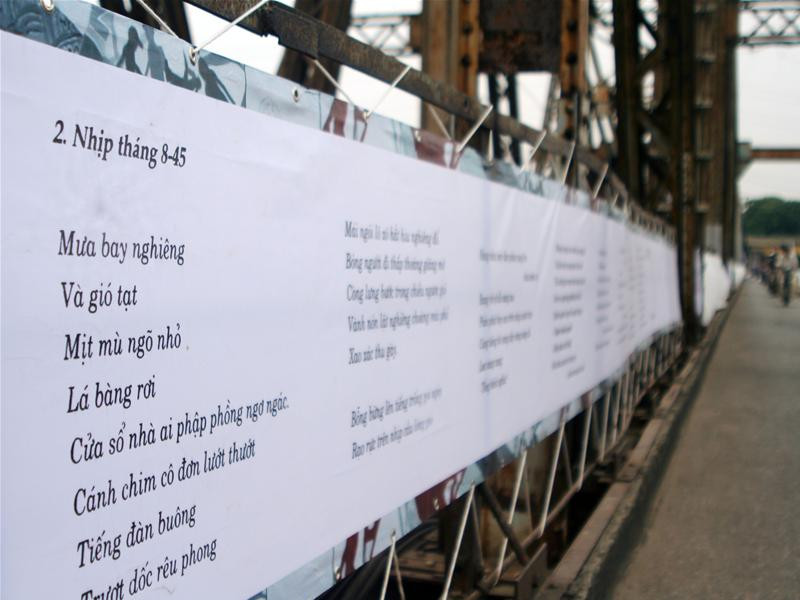 Những bài thơ của nhà thơ Vương Tâm viết về cầu đã được gắn lên thành cầu.