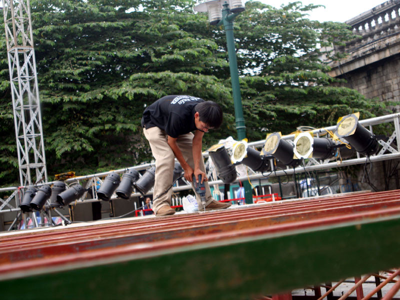 Sân khấu với diện tích 72m2 đang được khẩn trương hoàn thành.