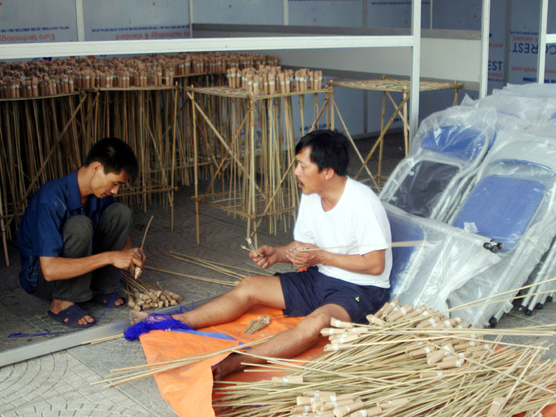 Pháo hoa dân gian dùng bắn vào cuối lễ hội ngày 10/10 do công ty nghệ thuật Đức Thành làm đã gần xong.