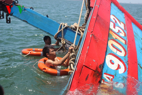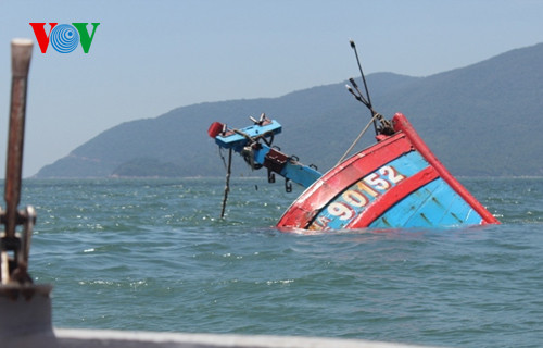 Tàu cá ĐNa-90152 của ngư dân TP Đà Nẵng bị tàu Trung Quốc đâm chìm khi đang đánh bắt tại ngư trường Hoàng Sa (ngày 26/5), hôm nay (31/5), tàu kéo KN 72 cùng lực lượng Chi đội kiểm ngư số 3 tại Đà Nẵng đã nỗ lực lai dắt tàu bị nạn từ ngoài vịnh Đà Nẵng vào bờ.