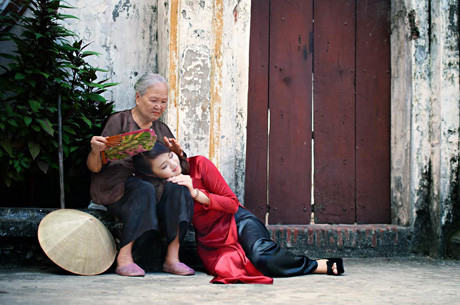Tuổi thơ ngồi trong lòng bà, hương thơm lúc nồng, lúc thoảng của miếng trầu phết vôi, nghe câu ca dao, những câu chuyện kể ngày xửa ngày xưa… chứa đựng biết bao trữ tình, mở ra thế giới lung linh cổ tích…