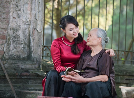 Vẻ mặt yên bình, ấm áp và thỏa mãn trong vòng tay của bà, khi được vuốt ve mái tóc; cử chỉ ân cần, quan tâm khi bóc cho bà chiếc bánh và cả ánh mắt hoài niệm, nhớ thương về những ký ức thân thuộc…