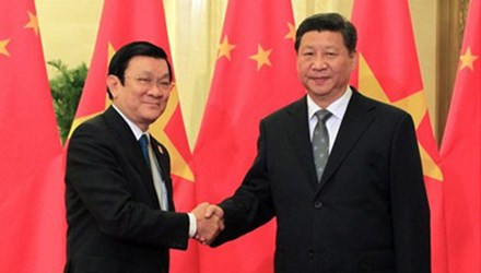 (Ảnh: Chủ tịch nước Trương Tấn Sang gặp Tổng Bí thư , Chủ tịch Trung Quốc Tập Cận Bình bên lề Hội nghị APEC. Ảnh: TTXVN)