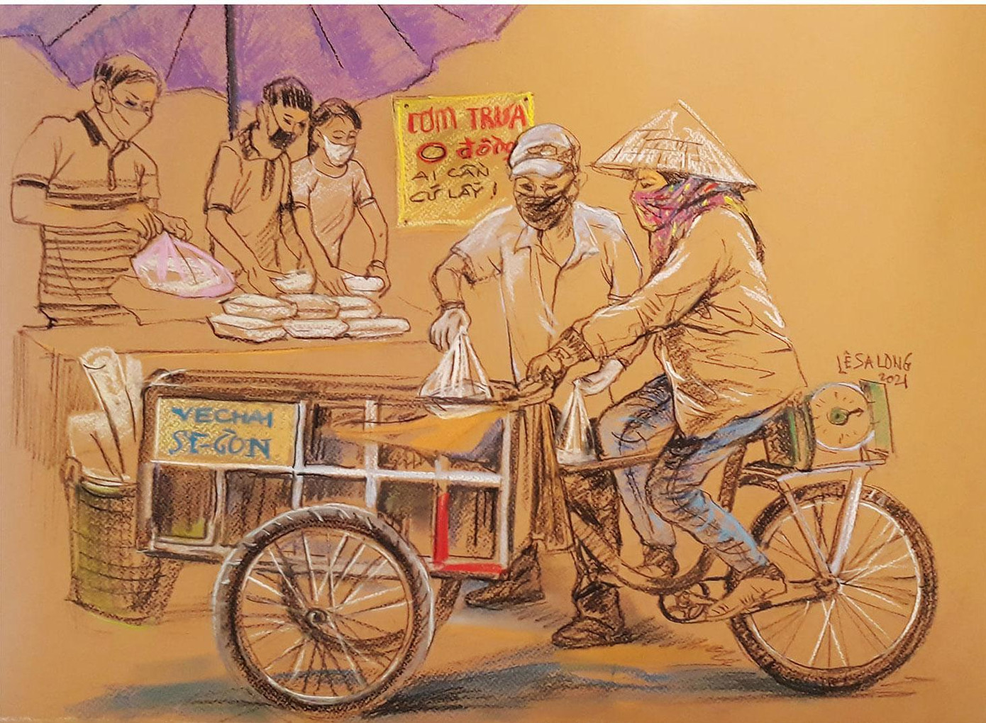 Lê Sa Long cho biết vì Sài Gòn còn cách ly nên anh vẫn còn sáng tác, những câu chuyện thấm đẫm tình người, những câu chuyện về sự chia lý, về sự hy sinh của mỗi con người vẫn được anh canh cánh trong lòng. “Tôi sẽ vẽ, sẽ vẽ tất cả. Tôi sẽ kể một câu chuyện bằng tranh của Sài Gòn trong những ngày giãn cách lớn nhất này”- Lê Sa Long nói.
