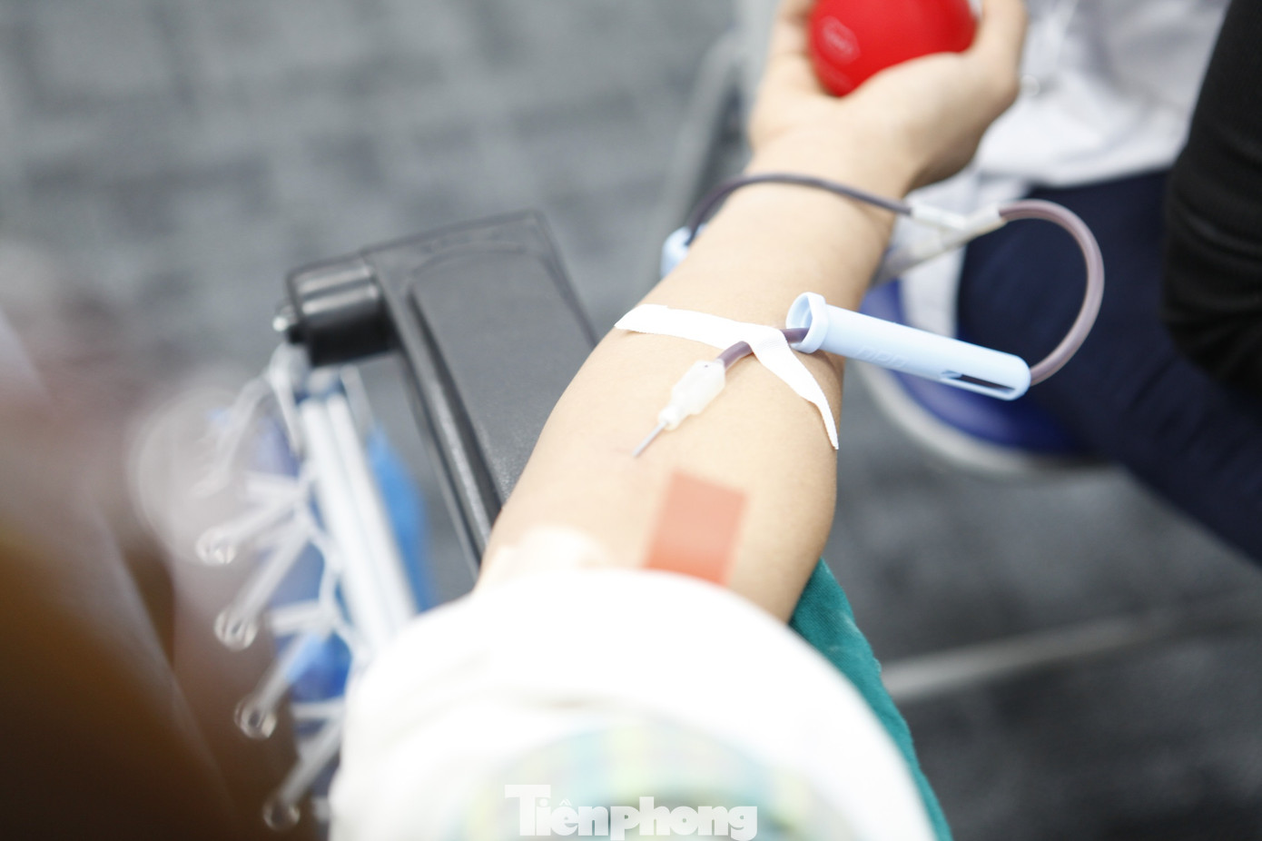 | Chị Lê Thị Huệ hiến máu. Ảnh: Nguyễn Thắng |