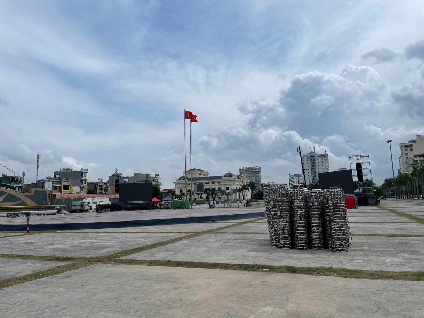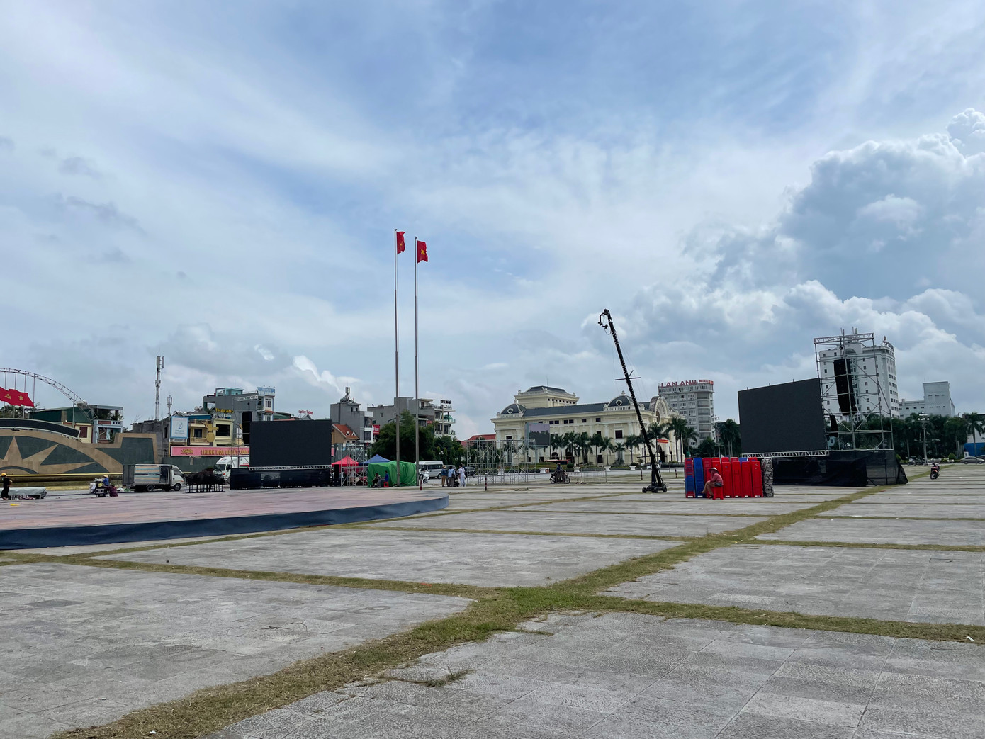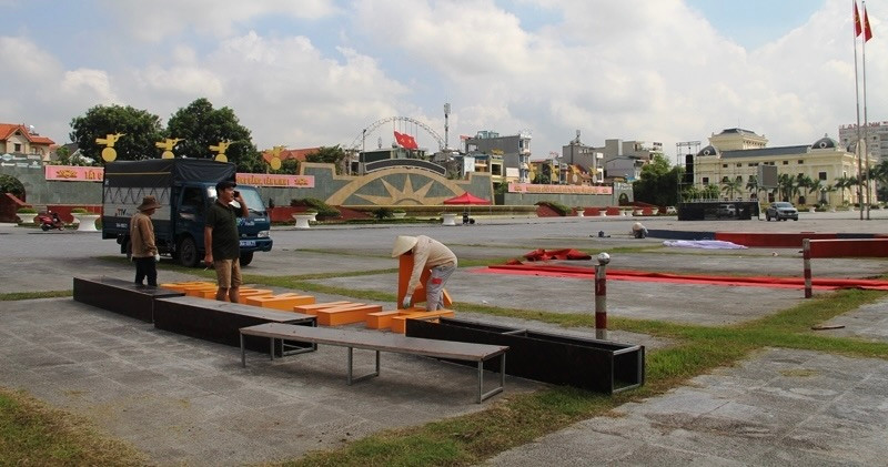 | Hoàn tất những khâu chuẩn bị cuối cùng tại Quảng trường Lam Sơn (TP Thanh Hóa). |