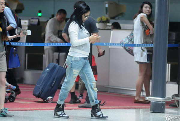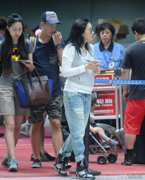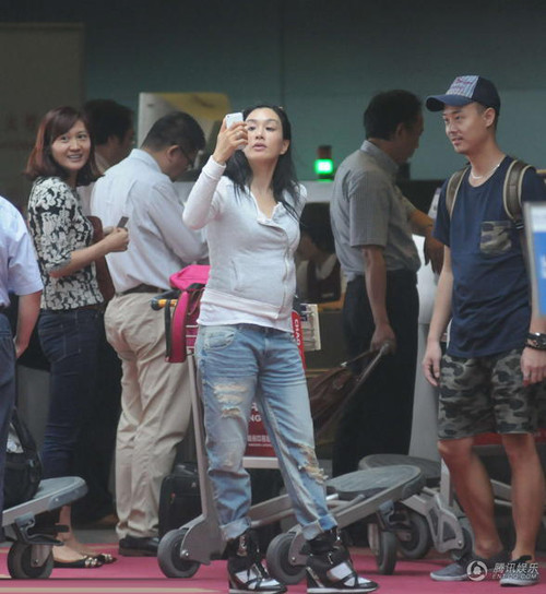 Chung Lệ Đề lọt vào tầm ngắm của paparazzi khi xuất hiện tại sân bay Hồng Kiều, Thượng Hải hôm 21/7. Phong cách thời trang bụi bặm khiến Lệ Đề có phần trẻ trung so với tuổi thực. Tuy nhiên, vòng bụng không mấy thon thả của cô khiến nhiều người bất ngờ, bởi khi xuất hiện trên tạp chí, Lệ Đề vẫn rất đẹp, gọn gàng.