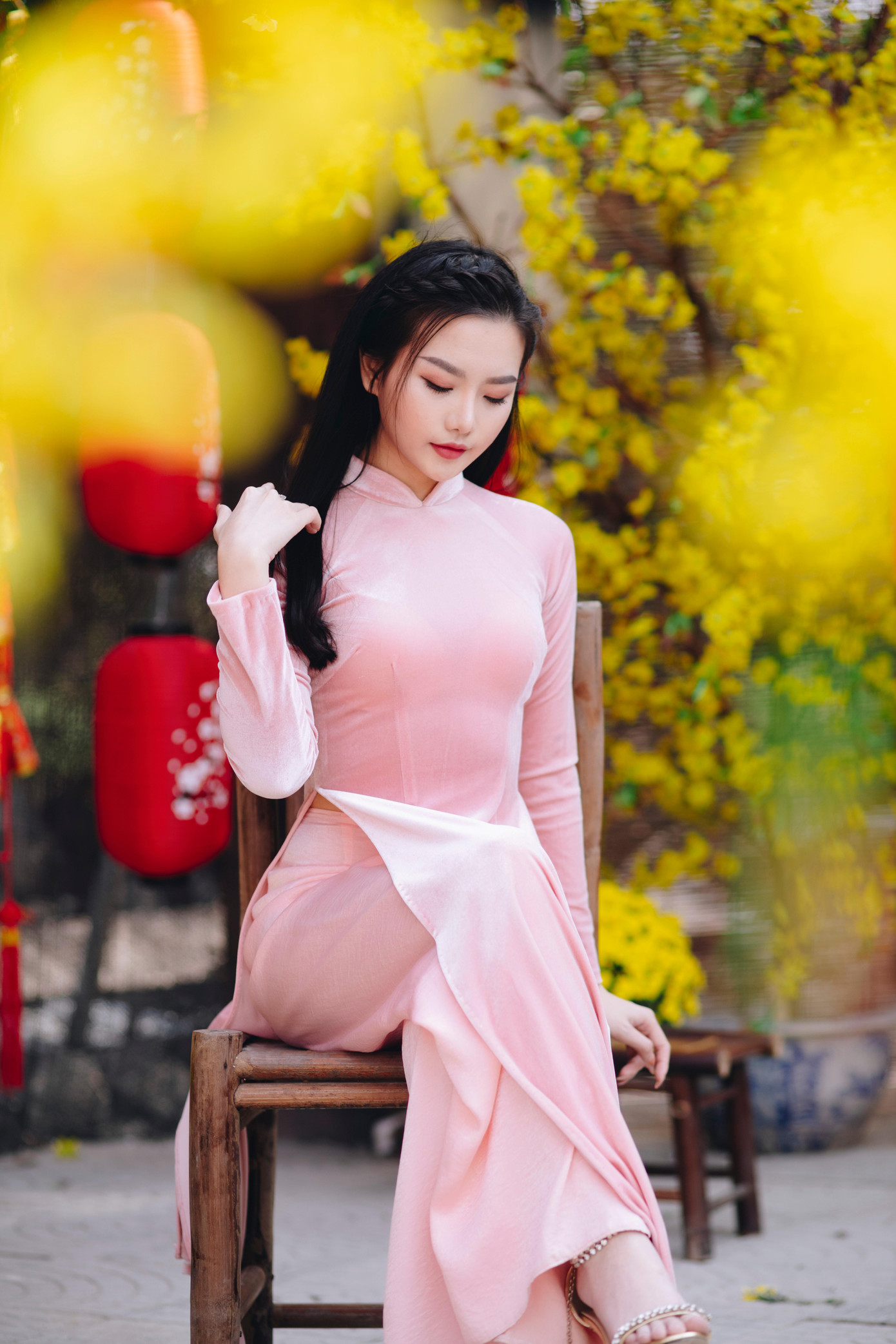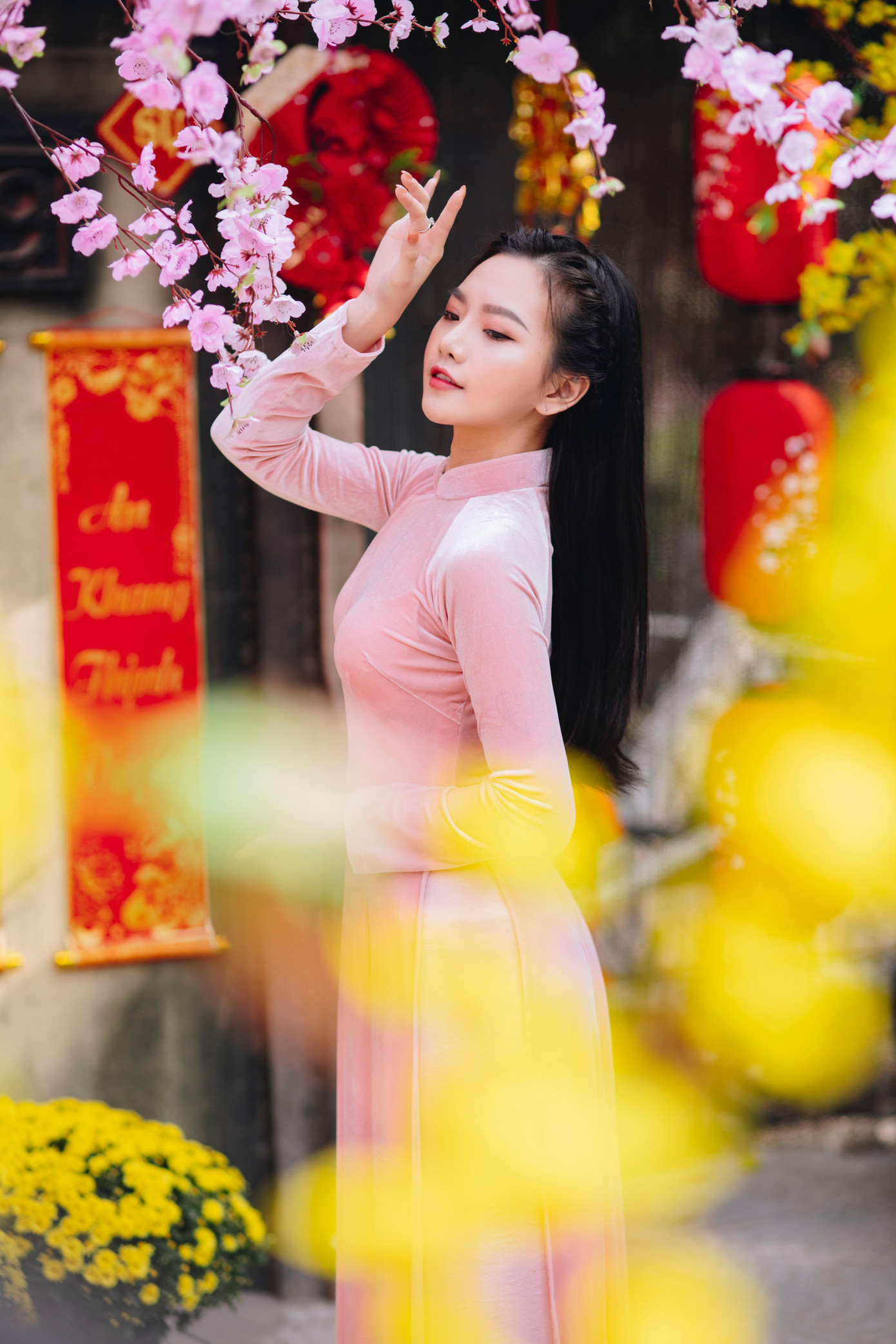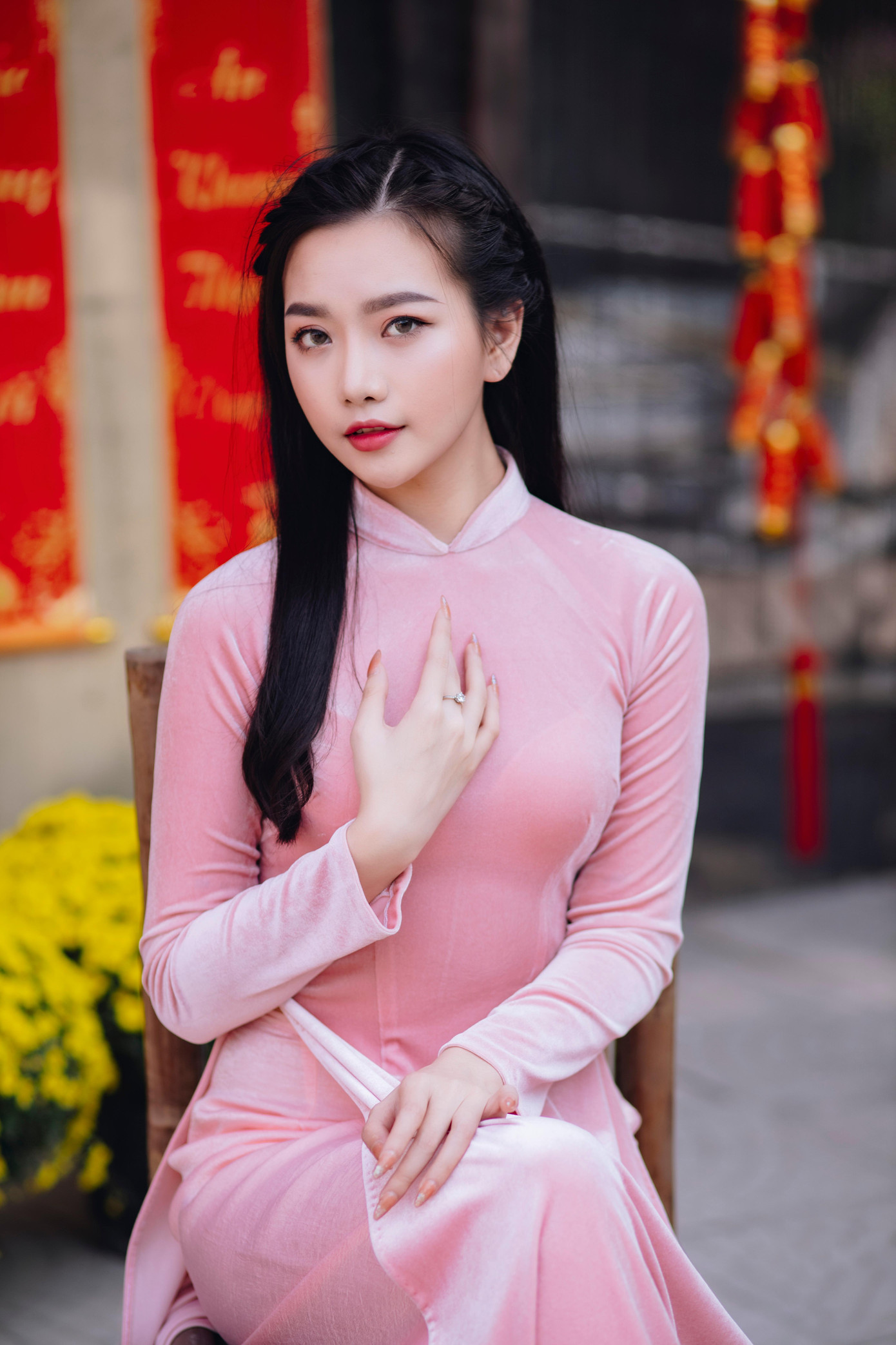 Đặc biệt, Phương Nga còn chào đón năm Nhâm Dần 2022 bằng cách chụp những bức ảnh xinh đẹp của mình trong trang phục áo dài truyền thống khiến cô gái trẻ này thêm đằm thắm, dịu dàng nhưng lại không kém phần quyến rũ, xinh đẹp.