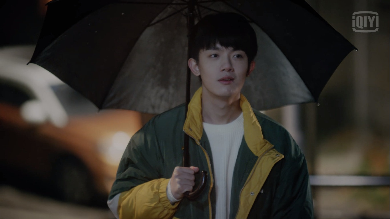 Là chiếc áo mưa vàng tươi tắn hay nụ cười của Hoàng Tranh Tử rạng rỡ đã xua đi cái lạnh lẽo của đêm mưa ấy, có lẽ Đàm Tống cũng chẳng biết. (Ảnh: iQIYI)