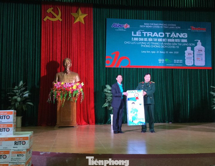 Đại tá Trương Công Minh, Phó chỉ huy trưởng Bộ CHQS tỉnh Lạng Sơn ghi nhận và cảm ơn những tình cảm mà công ty Sinh Việt và cơ quan báo Tiền Phong tại Lạng Sơn đã quan tâm đồng hành và những món quà này sẽ thiết thực cùng với lực lượng vũ trang nỗ lực hơn nữa, chiến thắng dịch bệnh.