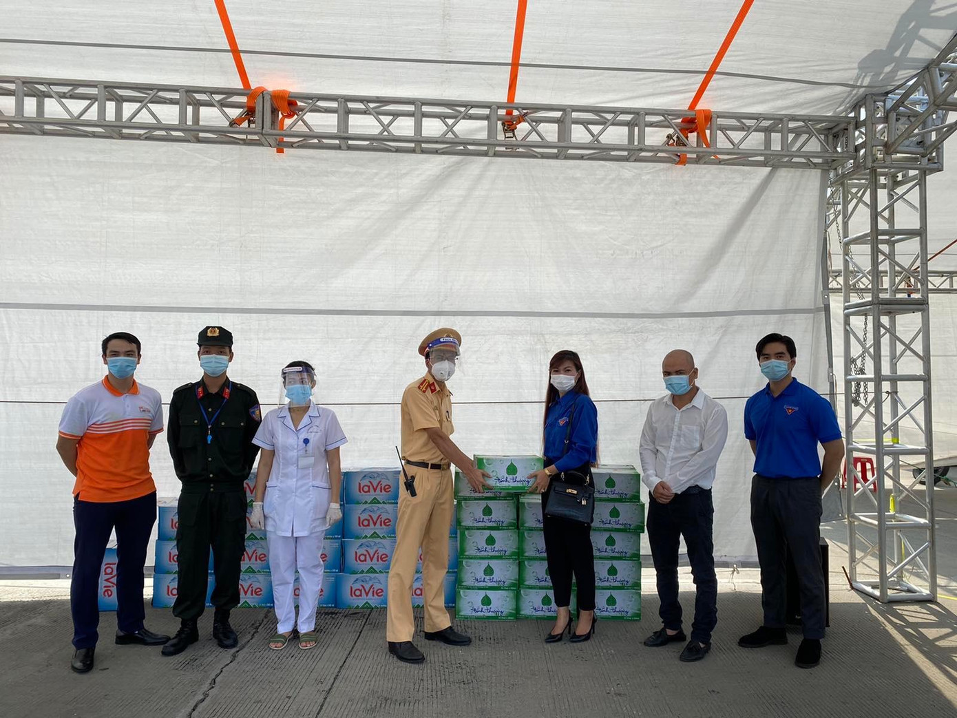 Với sự đồng hành của Công ty CIC Việt Nam, đoàn đã trao 690 thùng nước khoáng và 20 ô che nắng tới 23 điểm chốt qua đầu mối vận chuyển của Tổng công ty Chuyển phát nhanh Bưu điện EMS. Tổng giá trị quà tặng là 102.800.000 đồng.