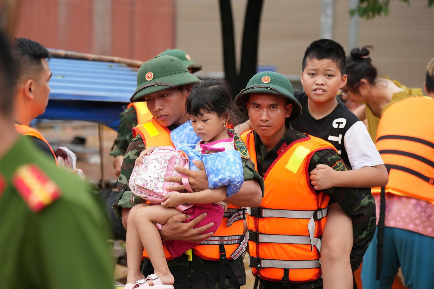 Gần 0h ngày 10/9, trời vẫn mưa lớn. Tiếng xuồng máy, tiếng phân công nhiệm vụ, tiếng đọc địa chỉ người cần cứu giúp vẫn vang lên ở khu vực tập kết trên đường Dương Tự Minh. Nhiều chuyến xuồng vẫn lao vào dòng nước lũ, rồi quay ra với những người dân bị ảnh hưởng bởi lũ lụt. “Chúng tôi chờ đợi từ sáng, rất may được lực lượng chức năng cứu hộ kịp thời. Nước đã ngập đến hết tầng 1, chuẩn bị đến tầng 2 thì lực lượng chức năng đến”, anh Từ Quang Trung (khu tập thể Đại học Thái Nguyên) nói với phóng viên báo Tiền Phong. Trong suốt cuộc giải cứu, nhiều em bé, cụ già được các chiến sĩ cõng, bế rời khỏi khu vực lũ lụt để đảm bảo an toàn tuyệt đối.