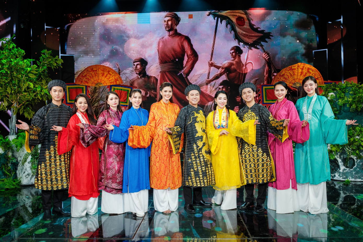 Mở màn chương trình là giai điệu hào hùng của 2 nhạc phẩm Hồn trống và Oai hùng trời nam (hai sáng tác của nhạc sĩ Minh Vy) để nhắc nhớ cội nguồn dân tộc, được tôn vinh bằng hiệu ứng ánh sáng và thị giác. Tinh thần đấu tranh giành độc lập được tiếp nối qua nhiều thế hệ được thể hiện rõ nét bằng tiết mục Đường lên phía trước.