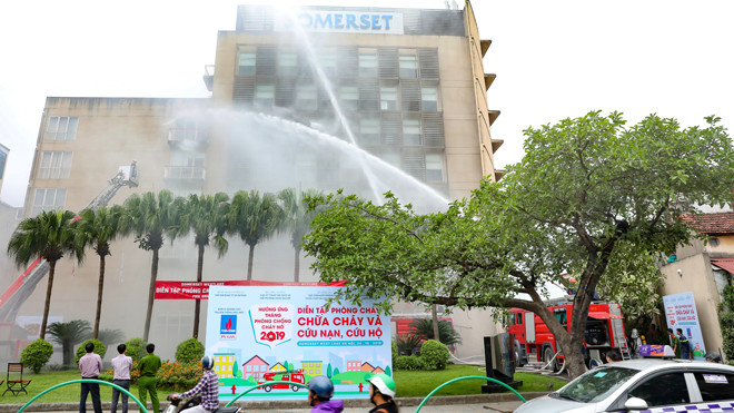 Tổ chức diễn tập phòng cháy chữa cháy tại khu Chung cư cao tầng và Tòa nhà văn phòng.