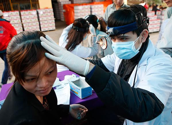 Đội ngũ bác sĩ khám sức khỏe cho cán bộ công nhân viên.