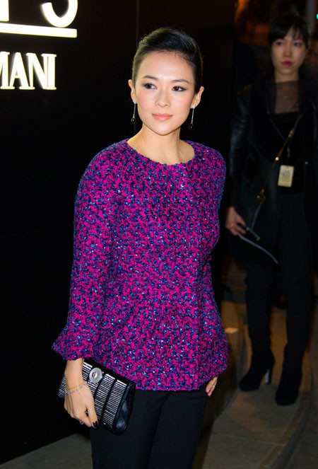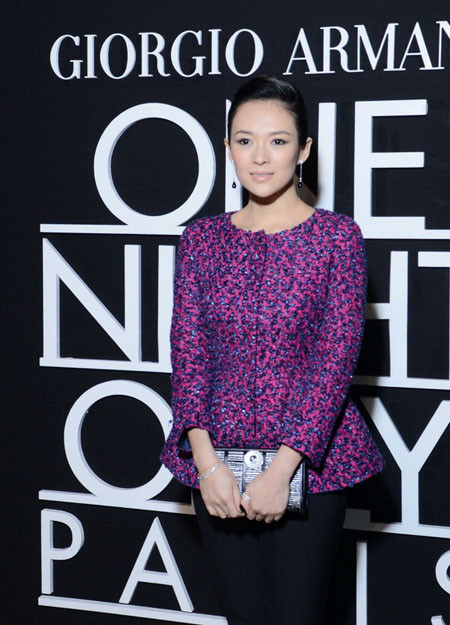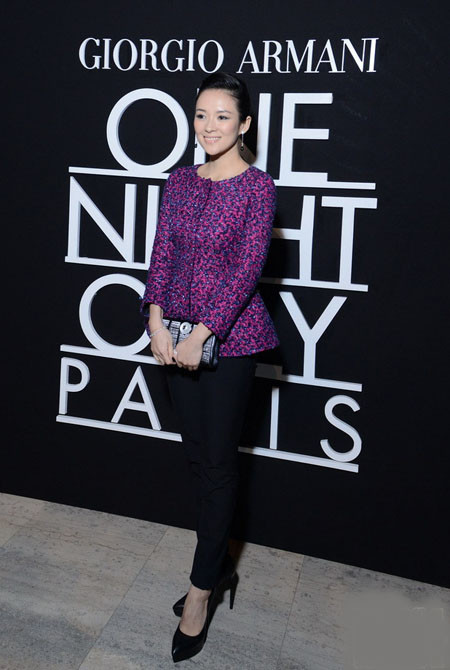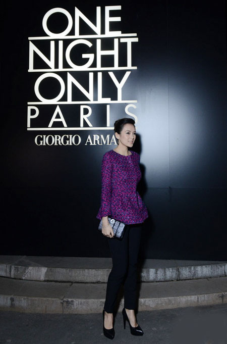 Tối 21/1, diễn viên Chương Tử Di góp mặt trong show diễn của hãng Giorgio Armani tại Tuần thời trang Paris với tư cách khách mời.