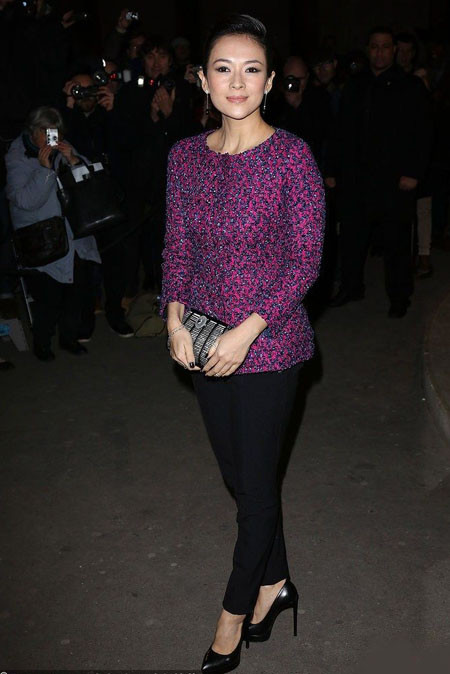 Chương Tử Di diện sắc tím tới Tuần thời trang Paris