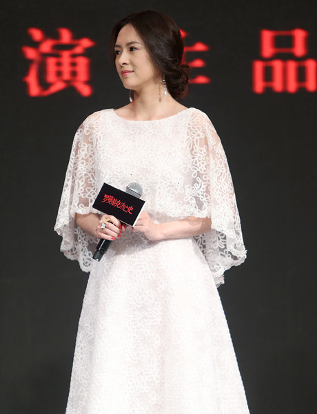 Tử Di diện đầm ren trắng muốt dự họp báo phim "Sự lãng mạn đã chết như thế nào" (tạm dịch), tổ chức ở Bắc Kinh, Trung Quốc hôm 21/4.