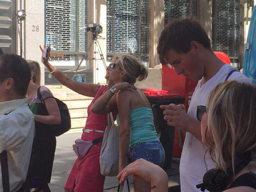 Những bức hình "selfie" nhanh chóng được chia sẻ trên mạng. Xung quanh họ, nhiều người dùng điện thoại tự ghi lại hình ảnh quán cà phê từ phía xa.