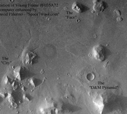 Tấm hình trên xuất hiện trong một clip phát tán qua YouTube và được giới thiệu "chụp bởi NASA". Tấm hình này đã tiếp tục dấy lên những tranh cãi về việc từng có người ngoài hành tinh trên Sao Hoả, cũng như nền văn minh từng có mặt ở đây.