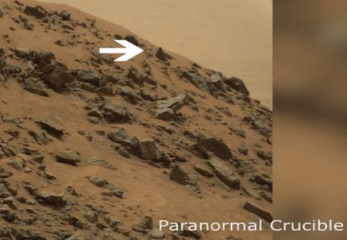 "Kim tự tháp" trong hình được những nhà nghiên cứu tin là có kích thước bằng một chiếc xe hơi, song một vài người đưa ra thuyết âm mưu nói khối kiến trúc này cho thấy từng có nền văn minh hiện diện trên Sao Hoả.